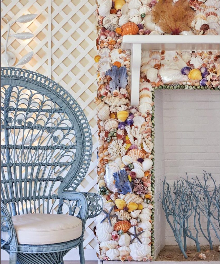 Shell art has also found a substantive place in coastal homes along nearly every seaboard—including in Florida. Artist Christa Wilm, owner of Christa’s South Seashells in West Palm Beach, works with shells to make a variety of household objects. The Gasparilla Inn in Boca Grande even commissioned her to complete a shell-studded fireplace surround.